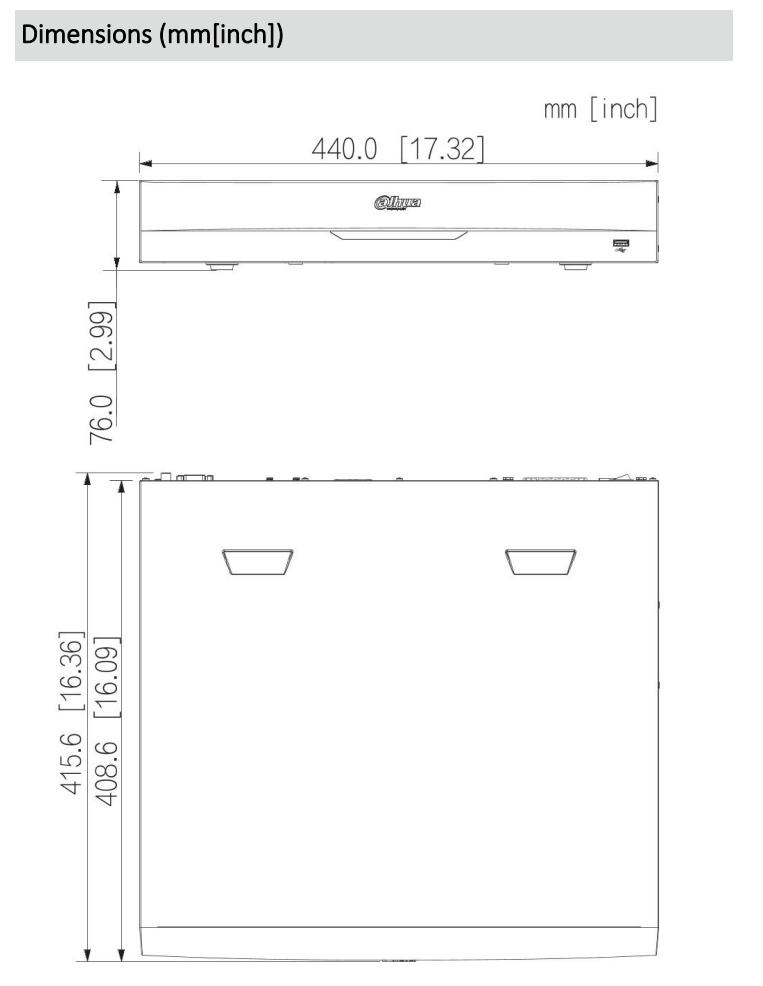 - Gehäuse / Abmessungen: ca. 1,5U Rack, 440,0 × 415,1 × 70,0 mm (B × T × H)